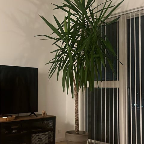 Yucca-planten er ca 2 meter over krukken, dvs 2,6 meter i alt.