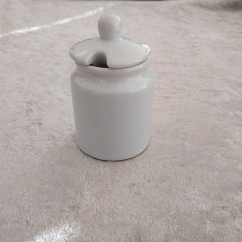 Opbevaringskrukke med låg i god stand.