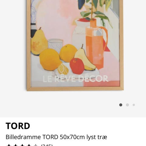 Jysk Oscar billedramme i størrelsen 50x70 cm med hvid ramme. I am selling the frame, for 50dkk but if you would like to have the poster as well, it will be for 120dkk in total (i bought it on Etsy from an artist and had it print here, thats why it is a little more expensive!) You can also buy the second frame with it for 40dkk!