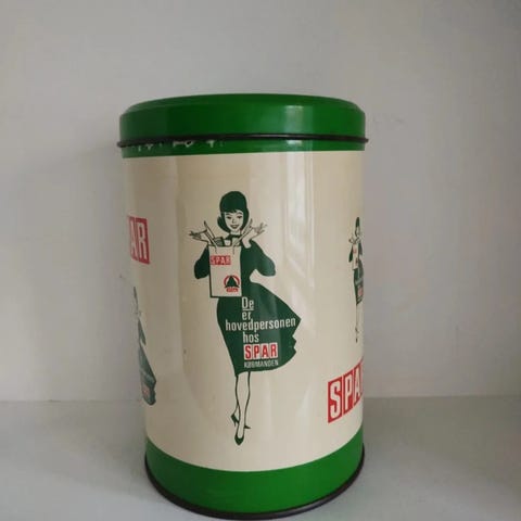 Fed gammel Retro Spar kaffedåse køkkenudstyr, Spar, Fed gammel Retro Spar kaffedåse med patina som det også fremgår af billede, dåsens str højde ca 17cm, diameter ca 11cm. Sender mod betaling af porto sendt med GLS som pakke UDEN omdeling 43kr..