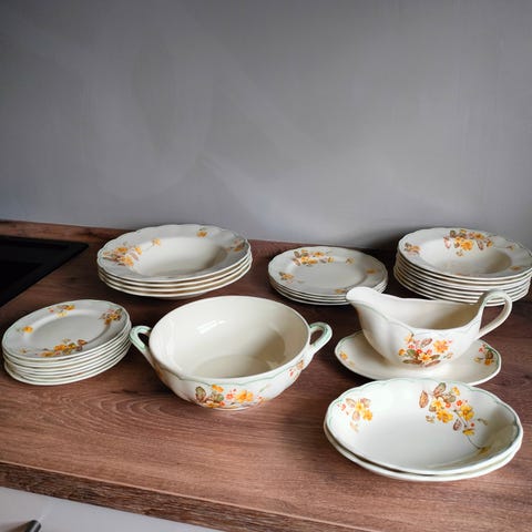 Vintage, Grindley creampetal, tallerkner, skåle mv