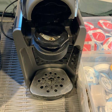 Det er en kaffemaskine til de der brikker man kan købe til at lave forskellige slags kaffe, cappuccino og meget mere.