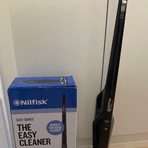 Nilfisk Easu 21 ledningsfri støvsuger med 20V batteri i sort farve. Støvsugeren er designet til nem og fleksibel rengøring uden ledning. Købt i august 2025. Støvsugeren er perfekt hvis gulvet lige skal have en hurtig tur. Nypris 1800kr