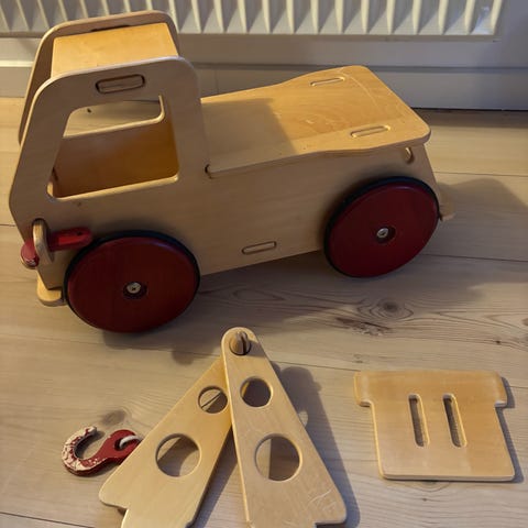 Træ lastbil, Gammel lastbil med hænger i træ. Olieselskabet Danmark.