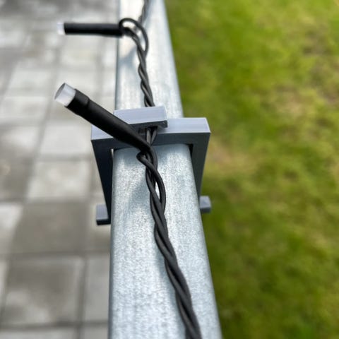 - Klik krogen på kanten, og fastgør din lyskæde i det dedikerede spor eller hæg den elegant op.