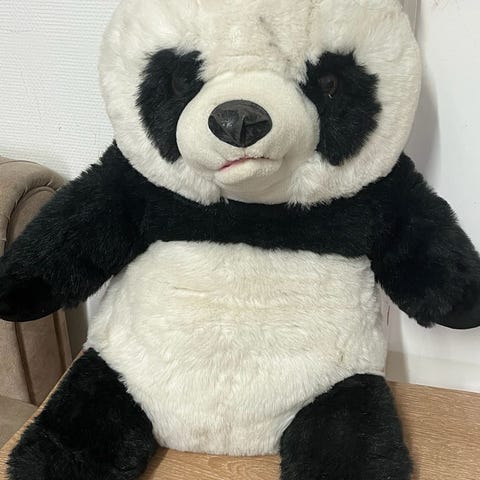 Super sød og bløde kæmpe bamse i brun farve, næsten ikke leget med. Den har kun stået til pynt :)