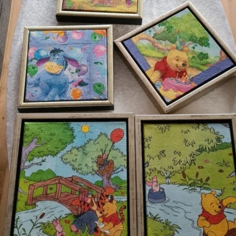 4 stk fine peter plys billeder til børne værelset måler 20 x 20 cm lige til at hænge på væggen