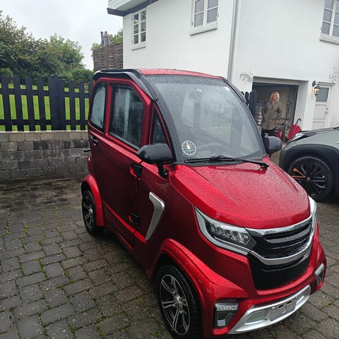 Hvis Bilen indregistreres kan den køre 45km/t. og må køre med 2 personer i bilen.