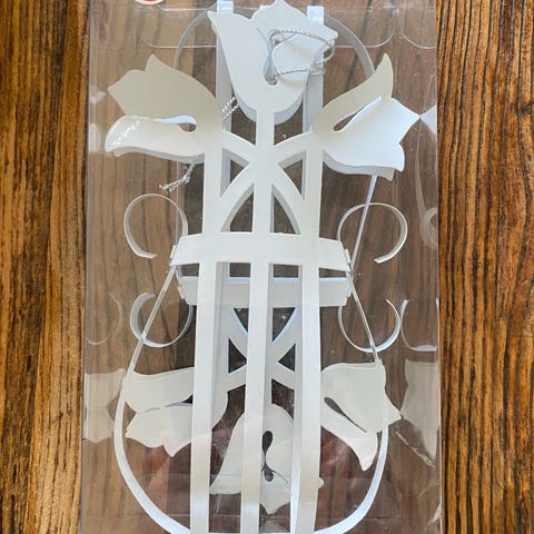 Læg en tørret rose eller anden pynt ind i ophænget, giv det en smuk sløjfe og hæng op.