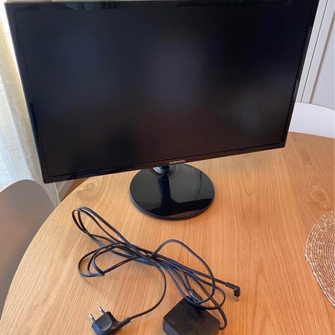 Samsung S24F350FHU 24" skærm med HDMI-forbindelse. Skærmen har en størrelse på 24 tommer og en sort finish. Velegnet til almindelig computerbrug og multimedieanvendelse.