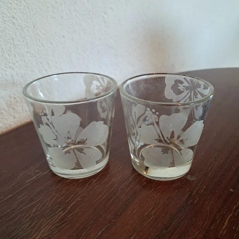 They are in good vintage condition with normal signs of age and light patina, adding to their character. The cut details remain clear and well-preserved. A lovely and atmospheric set, perfect for cosy décor, retro interiors, display cabinets, collectors, or simply as a unique and colourful touch to any table setting.