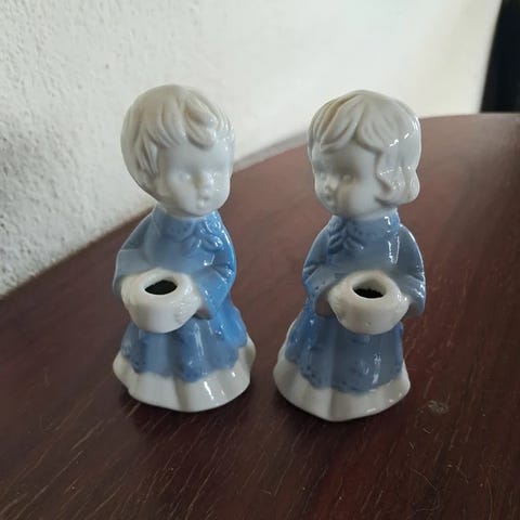 De står i pæn vintage stand med almindelige brugsspor og let patina, som kun tilføjer charme. De slebne detaljer er tydelige og velbevaret. Et smukt og stemningsfuldt sæt, perfekt til hyggelig belysning, retro-indretning, vitrinen, som samlerobjekt – eller som et unikt og farverigt indslag på bordet.