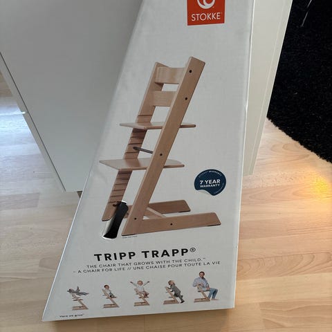 Stokke Tripp Trapp børnestol i sort farve. Fremstillet i træmateriale og designet til børn. Justerbar sidde- og fodplade for tilpasning til barnets vækst.