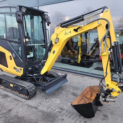 minigraver yanmar sv19vt, årgang 2022, kørt 1700 timer, egenvægt 1970kg, tiltman med hydraulisk hurtigskift, 2 olieudtag, udskydlige bælter, 2 speed, lys, blink, varme, radio, propotionalstyring i joystick, lang gravearm med gravedybde på 3 meter, der medfølger planerskovl + 1 graveskovl, leasing tilbydes, 32000kr i udbetaling, 2770kr om måneden i 48 måneder, 16000kr i restværdi, alle priser er + moms, vi har altid 120 maskiner på lager, ring for fremvisning da vi ikke har åbningstider og ikke altid er på pladsen.