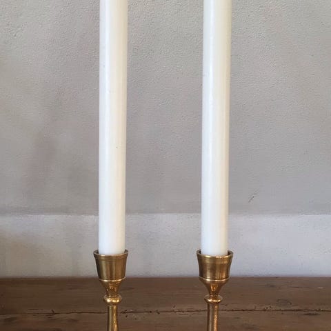 Messing lysestager med dobbelt funktion, til kronelys og fyrfads lys og bloklys. 18 cm høje og vejer 1,3 kg samlet. Sælges samlet