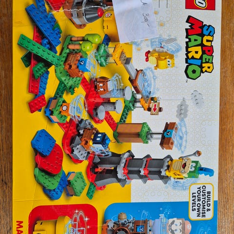 LEGO Super Mario byggesæt med forskellige byggeklodser og figurer. Sættet indeholder farverige klodser og elementer til at skabe scener fra Super Mario universet.