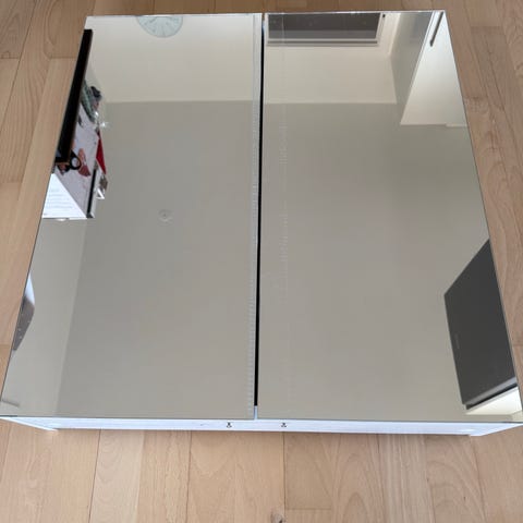 Spejlskab med hvid ramme og hylder