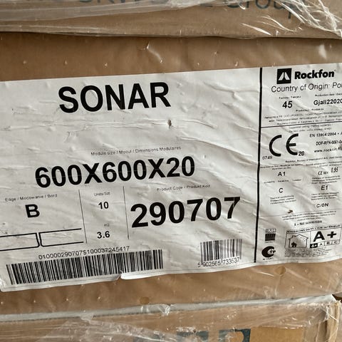 10 kasser Rockfon sonar akustik plader sælges. Helt nye og uåbnet.