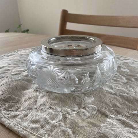 Skålen fremstår i rigtig pæn stand og giver et luksuriøst look til ethvert rum — hvad enten det er køkken, stue eller entre.