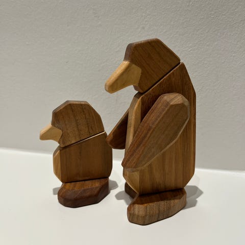 Fablewood træpuslespil med magnetiske trædele, der kan samles til to figurer: en stor og en lille giraf.