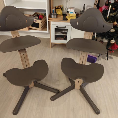 Om det er spisetid eller hyggetid ved bordet så kan det ikke undgås at barnet bevæger sig og måske har svært ved at sidde stille? Derfor skal en god stol give støtte og frihed til bevægelse, både når barnet sidder ved bordet og når det kravler op og ned af stolen. Stokke® Nomi® højstolen vokser i takt med barnet, og højden på sædet og fodpladen reguleres trinløst - helt uden brug af værktøj, og dybden tilpasses automatisk når højden reguleres. Formen, størrelse og struktur på både sædet og fodpladen giver en sikker indstigning og sikkert fodfæste, og duppen på fodpladen er med til at stimulere barnet og giver urolige fødder et sted at holde "frikvarter". Rygstøtten på højstolen er udformet for optimal ryg- og armstøtte - alt dette samlet er man sikker på barnet sidder behageligt og i korrekt ergonomisk siddeposition.