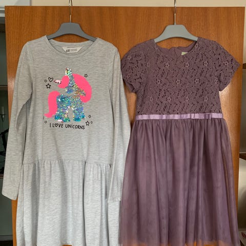 Lyserød kjole og blå kjole med tyl og glimmer. Brugt få gange. Brugt som Nytårskjole