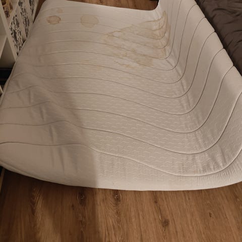 Jysk Wellpur Gold T65 madrass med mål 180x200 cm. Air memoryfoam former sig efter kroppen. Brugt i gæsteværelse, altid med rullemadras. Betræk kan tages af og vaskes.