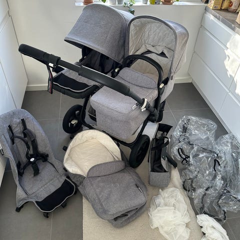 Bugaboo Donkey duo twin. Købt brugt i maj 2025 for 6900kr. Siden da brugt minimalt, fordi vores store datter er vokset ud af klapvognsdelen.