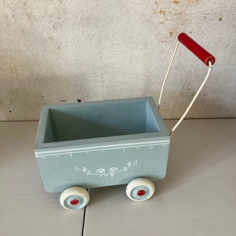 Maileg cykel til dukker i grøn farve. Cyklen har tre hjul og en tilhørende anhænger. Egnet til leg med Maileg dukker eller lignende dukker.