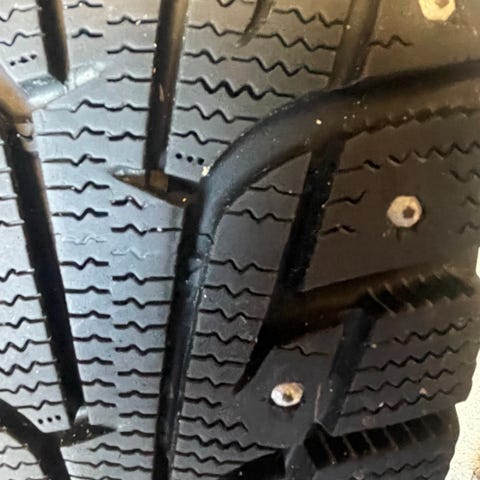 4 stk pigdæk, Nokian Hakkapellitta, monteret på stålfælge, med ca 8,5 mm slidemønster tilbage. Har kørt ca 3000 km i Norge, og været monteret på en Toyota Auris hybrid