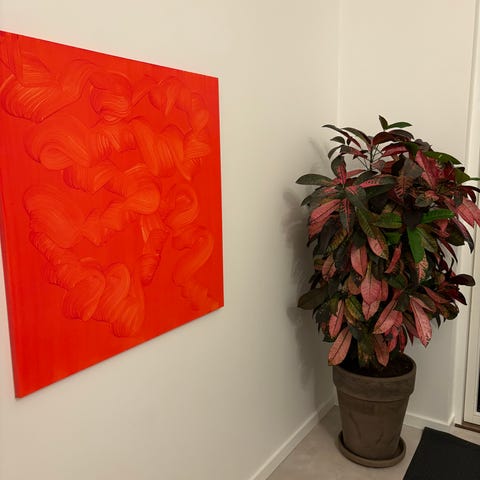 Abstrakt oliemaleri i varme farver