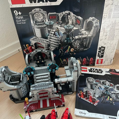 LEGO Star Wars byggeklodser med forskellige dele og figurer til samling og leg.