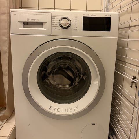 Kvalitetsmaskine fra Bosch, serie 8. Kendt for at være energivenlig og støjsvag.