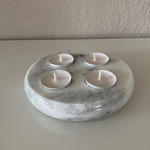 Rund lysestage i grå marmor, med plads til 4 fyrfadslys.