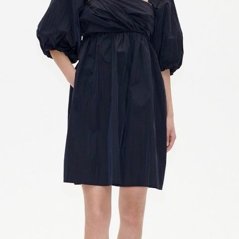 Ny smart halvlang kjole med bånd ved skulder og ryg (kan reguleres), lukkes med lynlås bagpå, sølvkant foran på kjolen, med slids (38 cm) foran/siden.