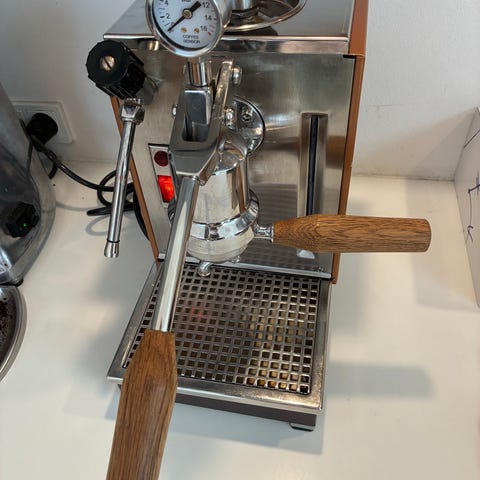 Sælger denne smukke og elegante La Marzocco GB5, som fremstår i en virkelig flot og sjælden pink farve. Maskinen er netop totalt renoveret og klar til at komme ud og arbejde mange år endnu.