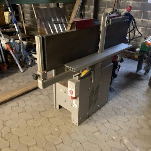 Snedkeri maskine, 5 x kombi, rundsav, afretter, tykkelses høvl, fræser og langhulsbor Afretter er 40 cm bred og 2 m lang, savbord er 150 lang. maskinen er 140 bred uden langhulbor og den løse rullebord. Den kan skilles på midten, så kan komme ind ad 70 cm bred åbning Super maskine der bliver brugt alt for lidt, momsfri, kan evt leveres