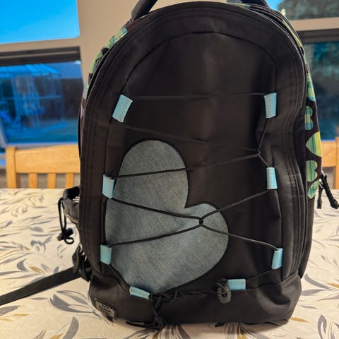 Rygsæk, ?, Sød lille turtaske i beige/guldglimmer med sød hundehvalp og lomme. Sød til de mindste