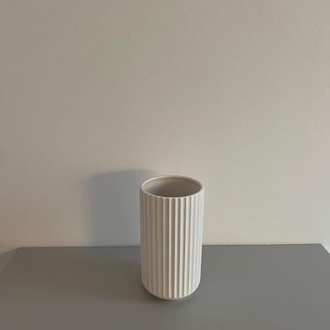 White porcelain Lyngby vase with silver lining, 25cm, good state with minimal signs of use.