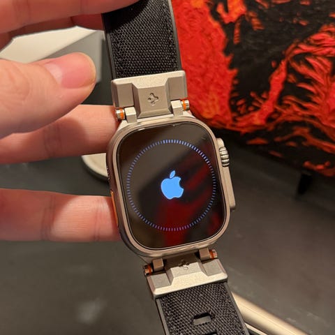 Flot og velholdt Apple Watch Ultra, alt medfølger - både kvittering, kasse, 2 originale remme (hvid og blå) og oplader 😊 Batteri 87%
