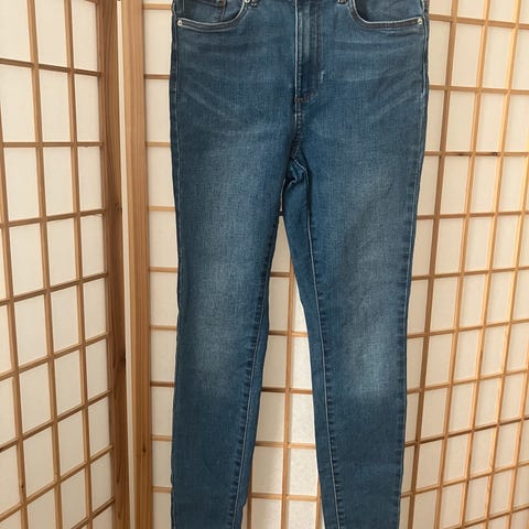 Jeans, R.E.D. Valentino, str. 29, Mørkeblå, 99% bomuld, 1% elastane, Næsten som ny, Indvendig benlængde 86,5 cm. Påsat et ‘V’ i metal på begge baglommer. Lige ben. Orange søm.