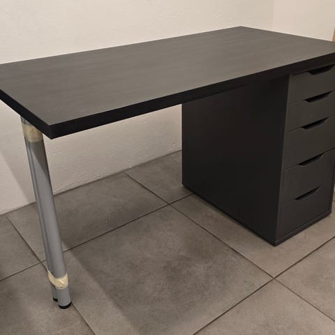 Pænt og velholdt IKEA skrivebord af mærket Lagkapten / Alex, samt kontorstol af mærket Markus, med høj ryg, justerbar højde og drejefunktion på hjul. Velegnet til kontorbrug.