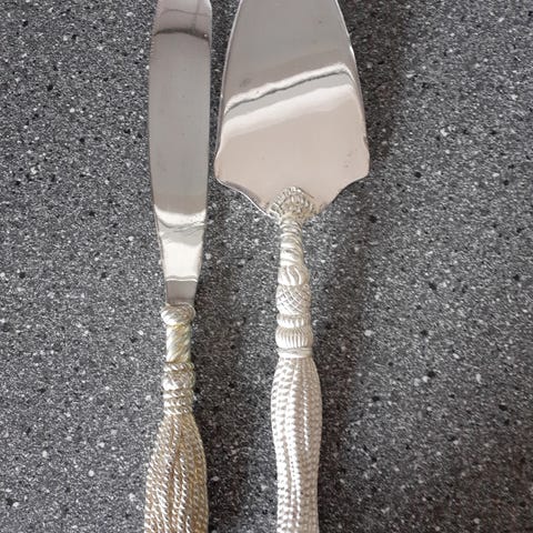 Meget Kagespade i sølvplet med dekorative detaljer på skaftet og skål. - 28 cm lang.
