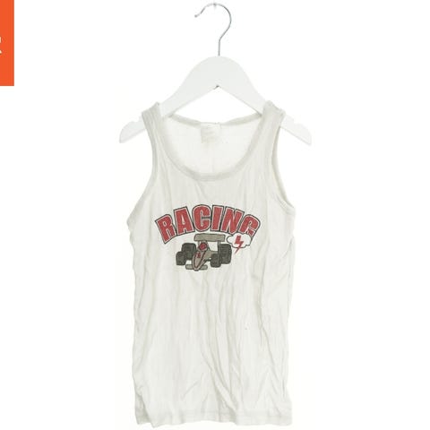 Sort t-shirt med kort ærme og rund halsudskæring. På forsiden er et racertryk i blå og hvid med teksten 'Adrenaline Racer'. Bagsiden af t-shirten er simpel og ensfarvet.
