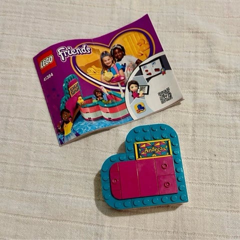 LEGO Friends 41384 som er en hjerteformet pool m. 1 figurer. Alle delene er der. God som gave til børnefødselsdag i klassen eller til pakkeleg