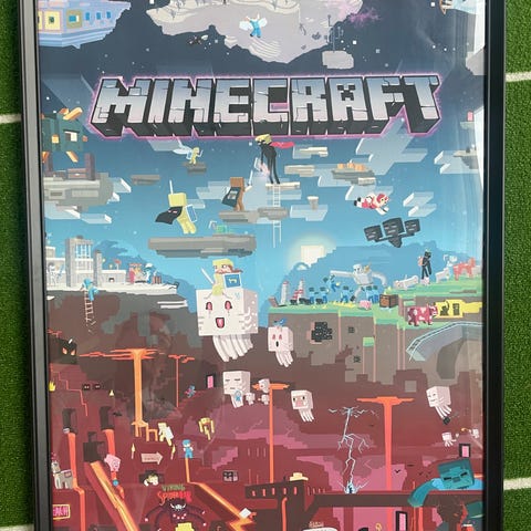 Judex plakat med Minecraft motiv. Plakaten har flere synlige ridser og revner på overfladen. Fra røg- og dyrefrit hjem. 50x70cm
