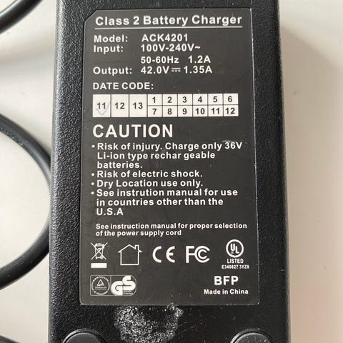 Oplader til elcykel batteri | 36V/42V – XLR (4pin) - 2A Ny vare