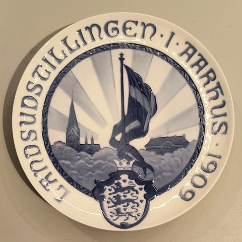 Porselænsplatte fra Royal Copenhagen med motiv af Amalienborg malet af Mads Stage.