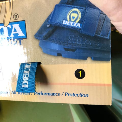 Delta Hoof Boot hovbeskytter designet til beskyttelse af hove. Str 2 kun brugt 2 timer på sugefod med grus. Sol str 1-2 medfølger. Er brugt til rund hov 13x14. Købt hos Lundemølle, her kan i se måleskema.