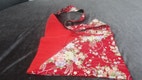 Skuldertaske, blomstret, Flot ny blomstret skuldertaske - har den med rød, blå eller gammelrosa bundfarve. Lynlåsrum inde i tasken.. Lukkes med bindebånd og små stykker velcro. Sort for.